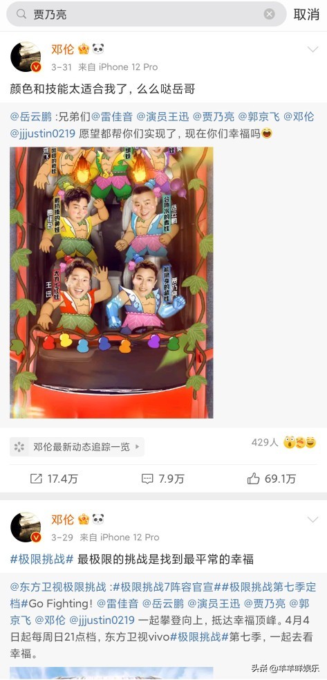 刚刚在贾乃亮、邓伦等几位成员的社交媒体搜索其他成员,不外乎都是和节目有关的宣传内容。抛开节目本身的一些私下联动几乎没有。