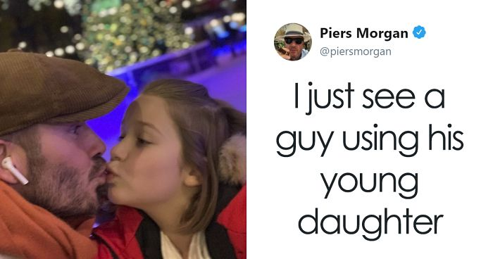 谁想到2019年,贝克汉姆在迈阿密的旅行中再次亲吻当时 7 岁的女儿后。英国名嘴皮尔斯·摩根称他这种不听劝的行为“令人毛骨悚然”。