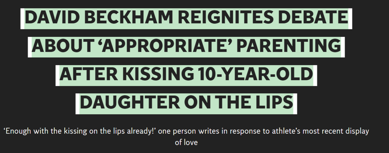 尽管大家知道贝克汉姆发图没有别的意思,但还是有很多人觉得, 公开亲吻女儿的嘴唇是不是不太合适?