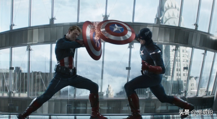 两位美队话不多说,直接打了起来。也许是因为2012年的美队刚刚打败洛基的齐塔瑞军队,手感正热,战意还在。没过一会就以一招强人锁男,禁锢住了未来的自己。