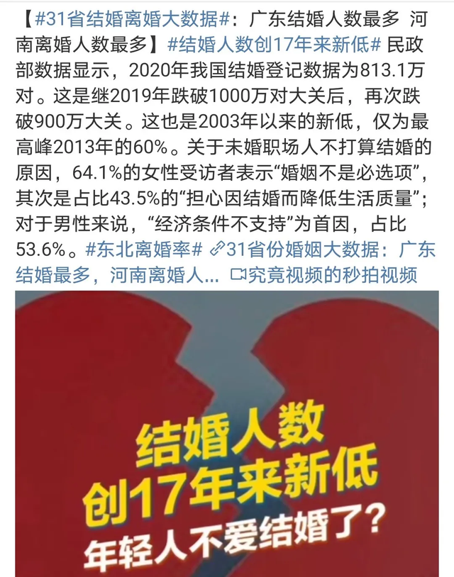 根据民政部最新数据显示,我国年轻人结婚率创17年以来新低,离婚率则是逐年在递增。