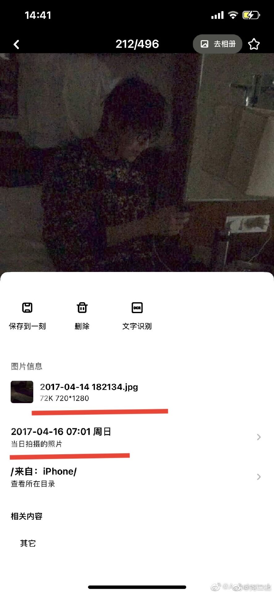 比如 此博主称卧室图片拍摄于2017年东方盛典晚上
