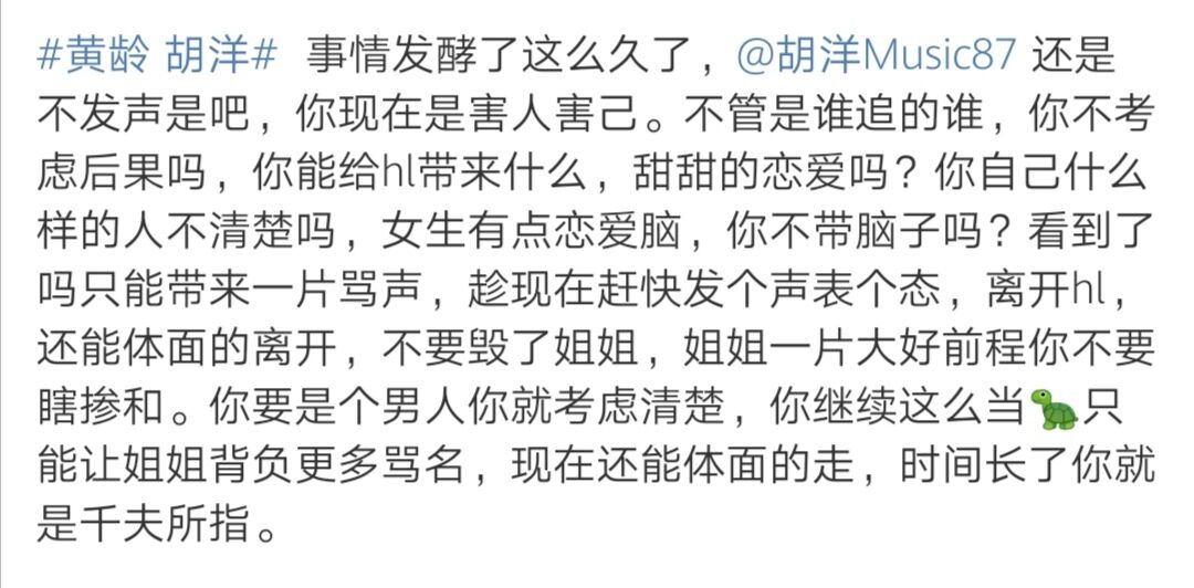 一边跑到胡洋社交账户留言 嘲讽他就是“渣男”一枚