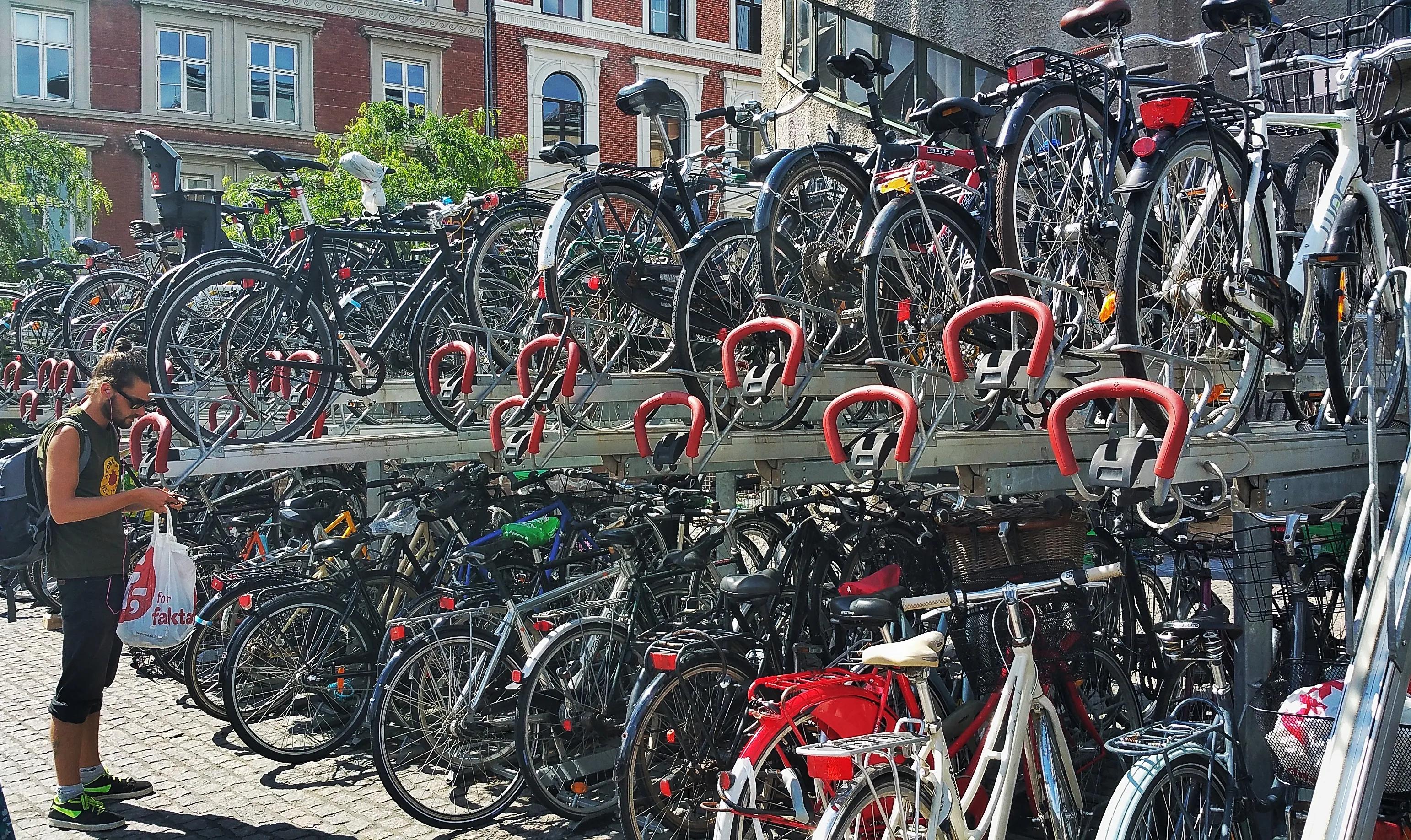 哥本哈根火车站的自行车停车场。