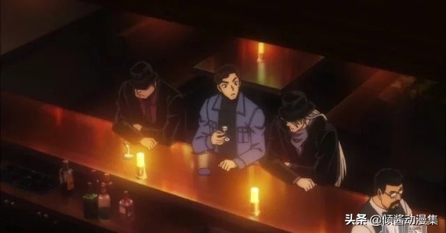 03黑暗组织三人的服饰:琴酒,黑帽,黑风衣,高贵紫内搭;伏特加,黑帽,黑眼镜,黑外套,暗红色闷骚衬衣;卧底男子,蓝休闲外套,黑色内搭。