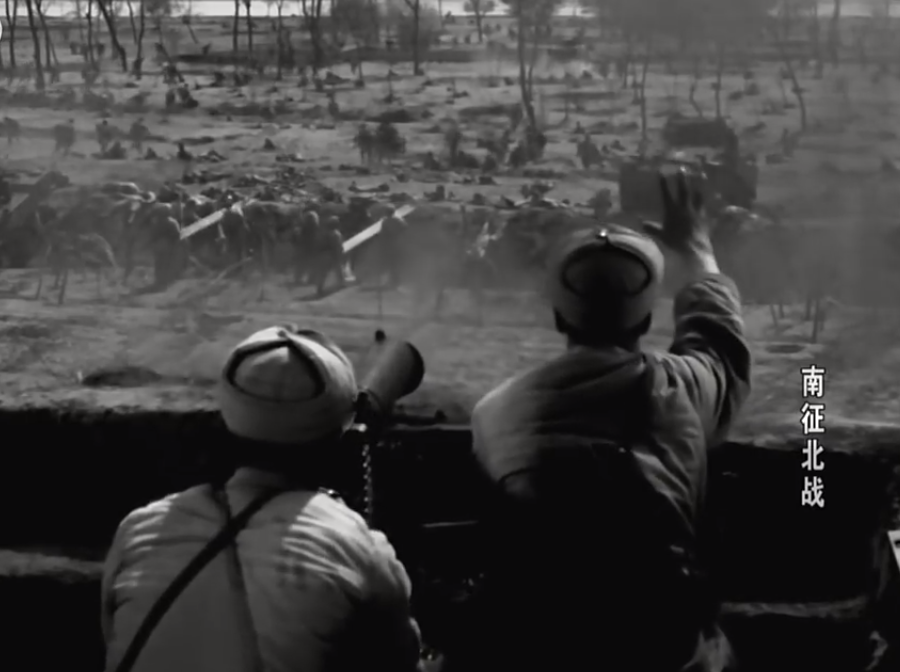 ▲《南征北战》中,重机枪掩护连队发起反冲锋
