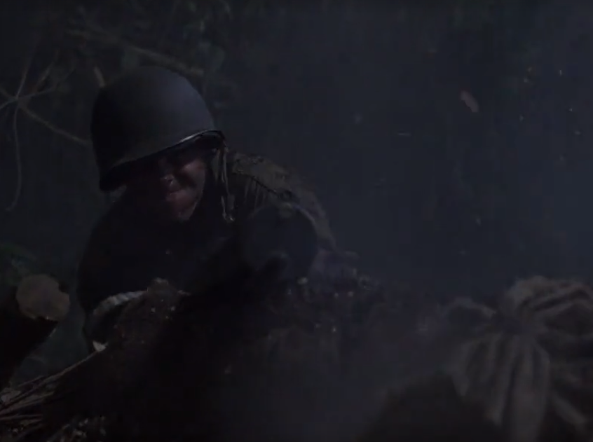在《太平洋》的前两集,m1917重机枪小组是最受关注的焦点,这不仅是因为机枪小组都是主要演员,重要的是这款重机枪在片中的表现。在第二集中,美军另一个机枪小组的射手,不仅在战场上排除了一次卡壳故障,部分时间里还手提该枪,用腰际射击或无枪架依托的方式射击日军。而且在横扫日军的同时,m1917重机枪还提振了处于紧张状态下的美军的士气,很多人会在战斗中下意识地看着己方重机枪喷射火舌。
