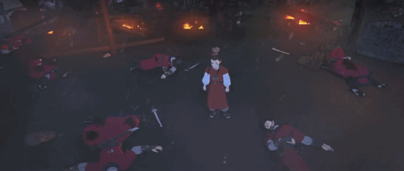 刀光剑影的打斗场面,配合快速凌厉的镜头剪辑。