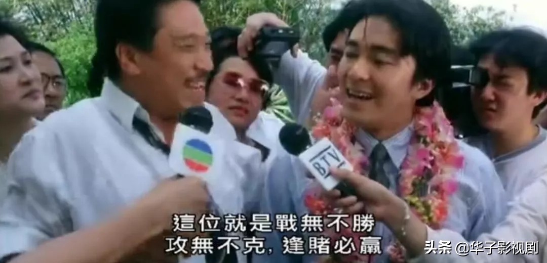 这时镜头切到了香港,赌侠的扮演者星爷,正在和由达叔饰演的他老叔(shú)一起开新闻发布会,接受北京电视台等媒体的采访。主要内容就是向大家高调宣布自己是赌神高进的徒弟,赌技以及足疗功夫多么出神入化等等。