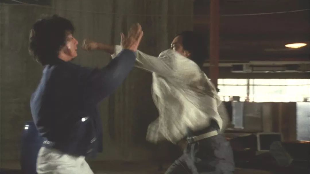 这场打斗是电影的重头戏,成龙难得和狄威来一场对打,而高飞、田俊、柯受良这些动作演员也是极为凶狠。
