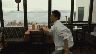 这个跳窗的镜头一开始是由钱嘉乐做的替身,从窗户跳下来时原本应该掉在遮阳布上做一个缓冲,再掉到行驶中的车顶,就像影片最终呈现的那样。