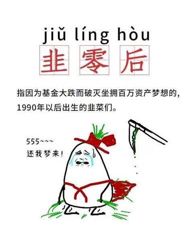 “韭零后”是90后的谐音,网络用语中泛指1990年以后出生的,购买基金后暴跌的一群人。