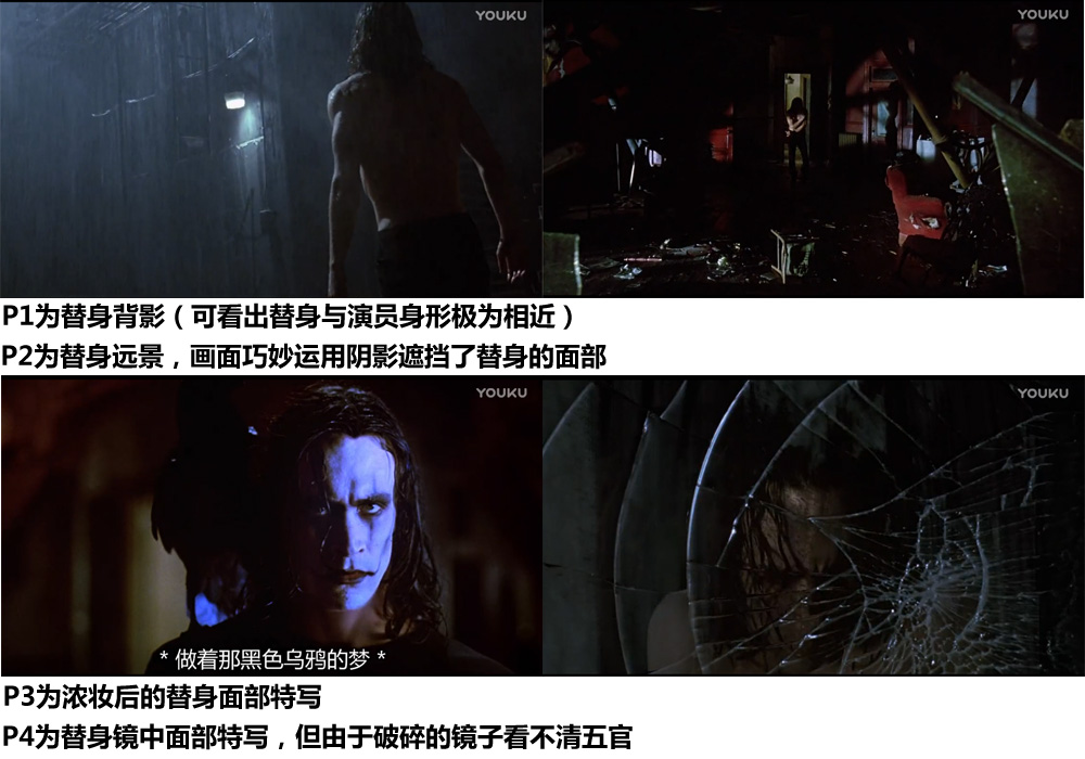 在拍摄时,如果有李国豪影像的远景或者不露脸的特写,剧组便选用一位与其身形相近的替身和一位五官相近的替身。由于影片本身的哥特式风格,场景中多有阴暗灯光,且角色本身需要有浓妆,导演巧妙的运用了这些因素,所以观众如果不知道内情,很难看出替身的存在,如下图中均为替身出演。