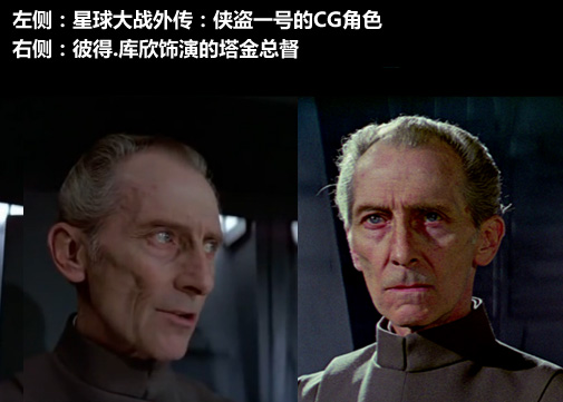 在《星球大战》系列电影中,塔金总督是经典反派角色之一,他是帝国皇帝的忠诚爪牙,死星计划的主谋,可惜的是,饰演塔金总督的这位演员在1994年就离开了人世。然而在2017年上映的《星球大战外传:侠盗一号》中,居然出现了这位已故演员的身影,这正是得益于幕后团队强大的cg特效技术。这位逝世超过20年的经典角色的"起死回生",令无数星战迷惊喜的大呼过瘾,也让这个角色成为迄今为止最为真实的cg人物角色。