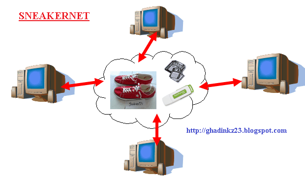 因为那时候穿球鞋上班的基层人员会比较多,所以这种运送数据的方式就被称作了 “ 球鞋网络 ” ,他们会通过走来走去的方式在办公室里传递电脑文件。