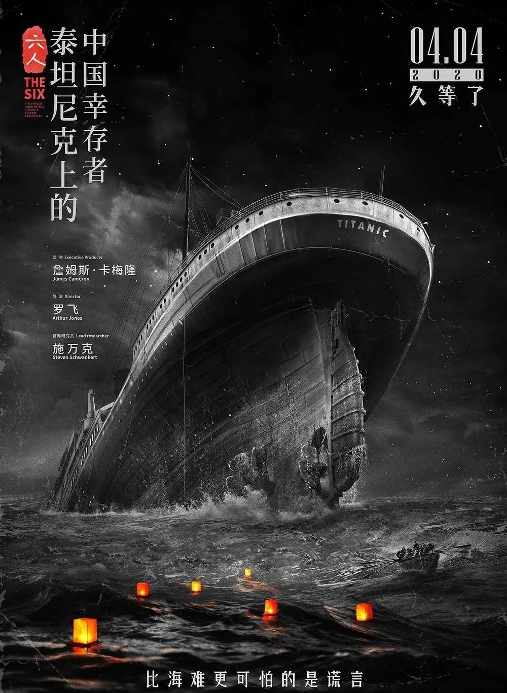 如今,在泰坦尼克号沉没109年后,又一部从船上的中国乘客的视角出发的影片《六人-泰坦尼克号上的中国幸存者》即将上映。