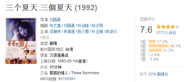 而二十四年前的《三个夏天》豆瓣评分却高达7.6。