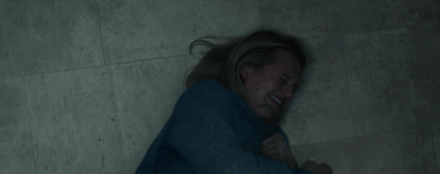 被隐形人攻击时,无实物的表演,最考验演技,伊丽莎白完全可以驾驭。