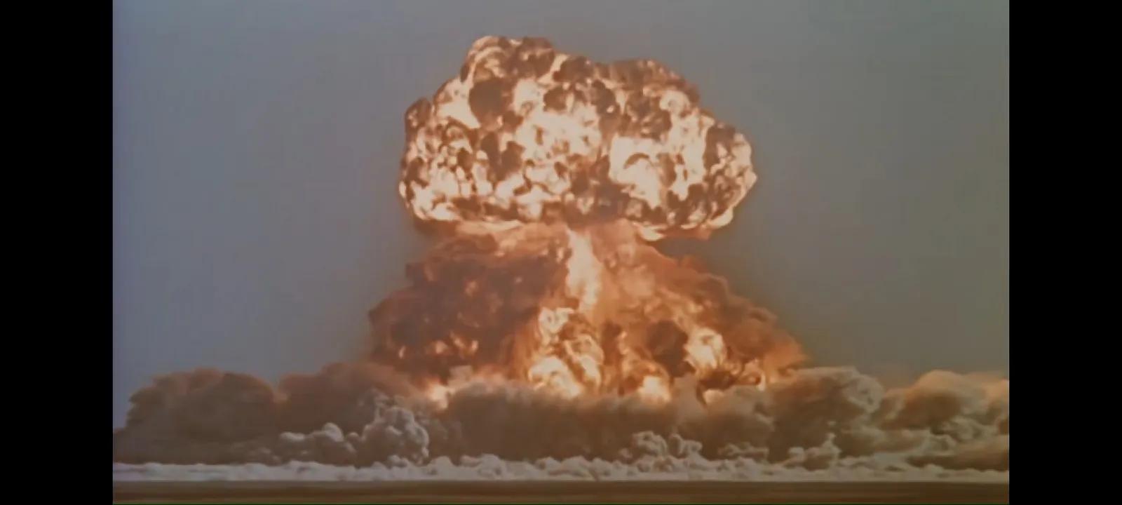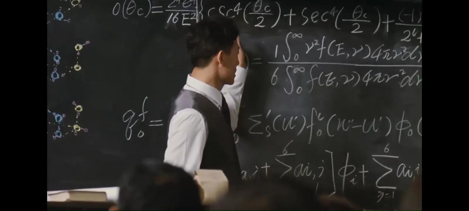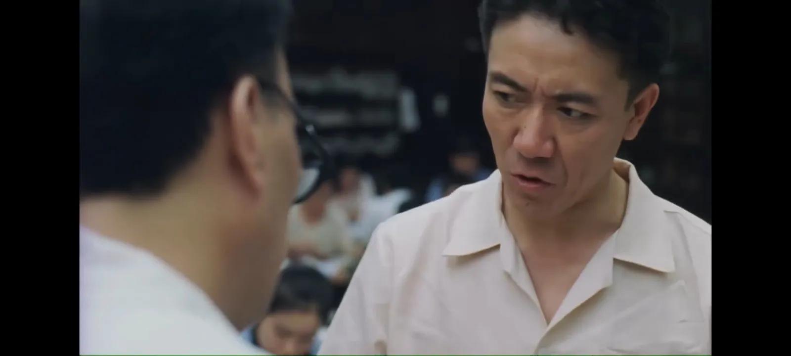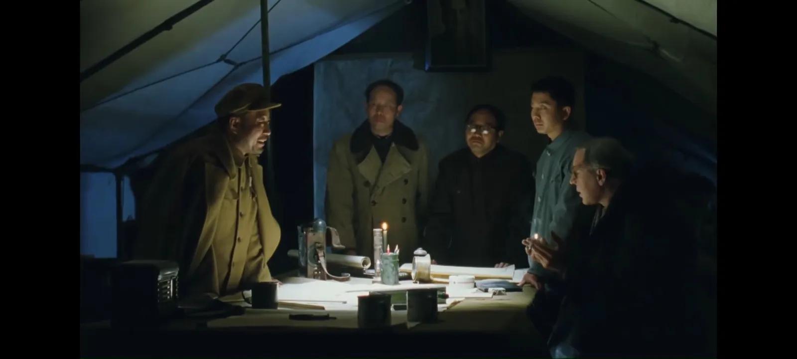 随后,李雪健老师饰演的冯石出场了,图中的他正在观看美国原子弹的核爆场面,眼神之中不无忧虑与愁丝。