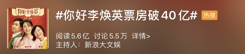 大年初一,贾玲自编自导的电影《你好,李焕英》上映。电影放了快两周,不仅票房突破了 40 亿,超越了假期风头很劲的唐探 3 ,“李焕英”这三个字也在热搜上挂了整整 11 天。