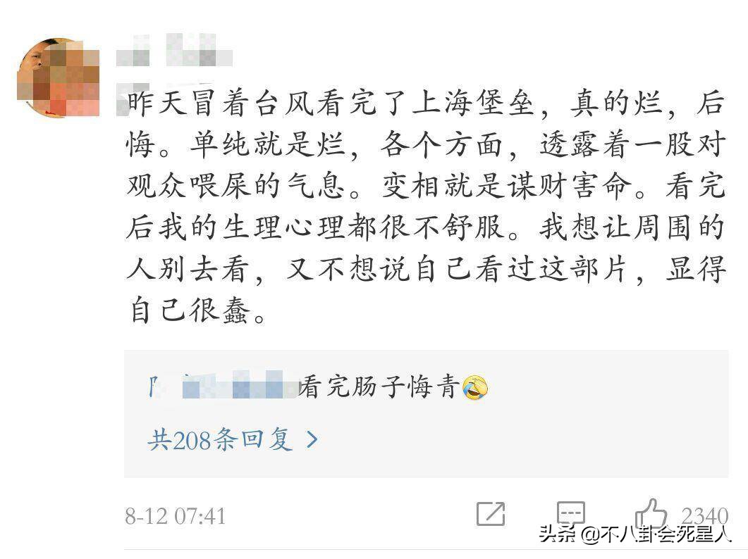这奇怪的现象让小8不禁想起了2013年上映的年度烂片王《富春山居图》,那部集合了众多实力派演员的电影也收获了不少批评,当时也有相当一部分网友表示自己十分好奇它烂的程度,这与现在《上海堡垒》的观众反应如出一辙。