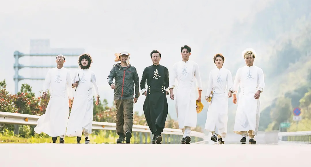 影片最后深山学武的梗:通宵熬鹰练耐力,高速公路插小广告、红鲤鱼绿鲤鱼吕驴、看似教得“不靠谱”,但实际上充满了“人生智慧”。