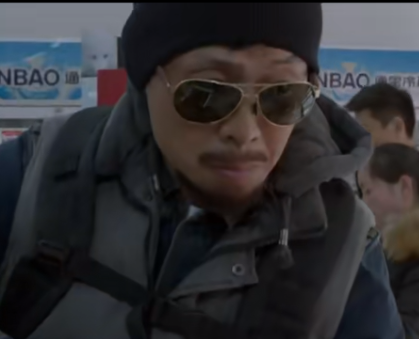 列车行进途中,一个包裹掉下来,砸到了大宝的头。大宝说这真是一次苦难的旅行。