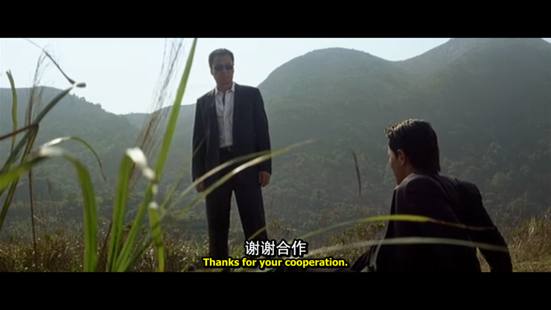《黑社会》用象征权力的龙头棍当麦格芬(mac guffin),拿它作为剧作钩子来展开黑道之间的生死争夺。《以和为贵》的表面故事还是紧紧扣住争抢话事人位子来写,然而龙头棍在结尾出现,有着曲终奏雅点出要害的意味。副厅长把棍子交给吉米,这位权势人物大概在龙头棍上安装了gps,对它的轨迹了如指掌。