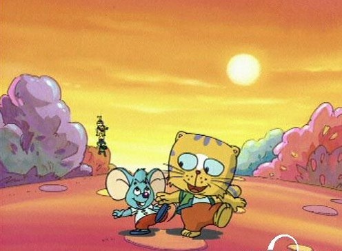 《大脸猫和蓝皮鼠》 蓝皮鼠和大脸猫是魔奇杂技团的明星。经常外出演出,每到一处就会发生一个故事或一个奇遇。"