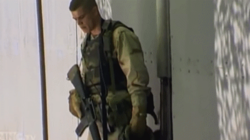 因为街道还有平民 为了避免误伤,他们只能驱车前行,但这些平民却半点都不领情他们躲在阴暗的角落在战车经过刹那,突然开枪射穿了士兵的脖子,子弹穿破喉咙当场牺牲了。