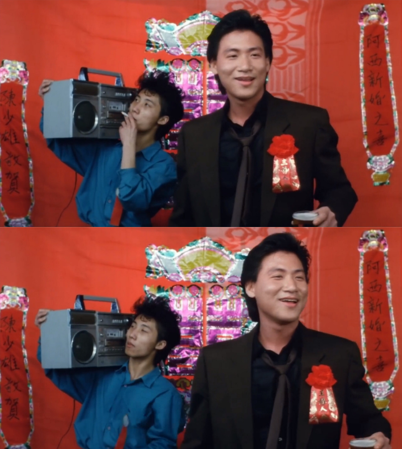 像他在戏里大闹婚宴这场戏,其实就是暗指张学友低谷时期干过的蠢事。另外,因为王家卫不想重复《英雄本色》那样的“英雄式”黑帮片。所以,他的“反英雄式”表达更多的交给了“乌蝇哥”来完成。