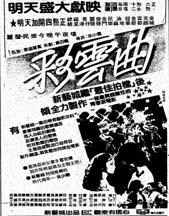1982年的某天,还在四哥(谢贤) 发哥(周润发)等大咖身旁跑龙套的刘德华得到一个机会,那就是为新艺城即将推出的新作《彩云曲》饰演男一。