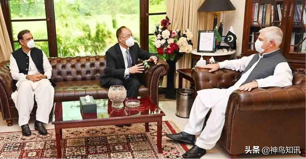 当地时间19日,农融大使(中)在白沙瓦会见开普省首席部长马哈茂德·汗(图据中国驻巴基斯坦大使馆官网)