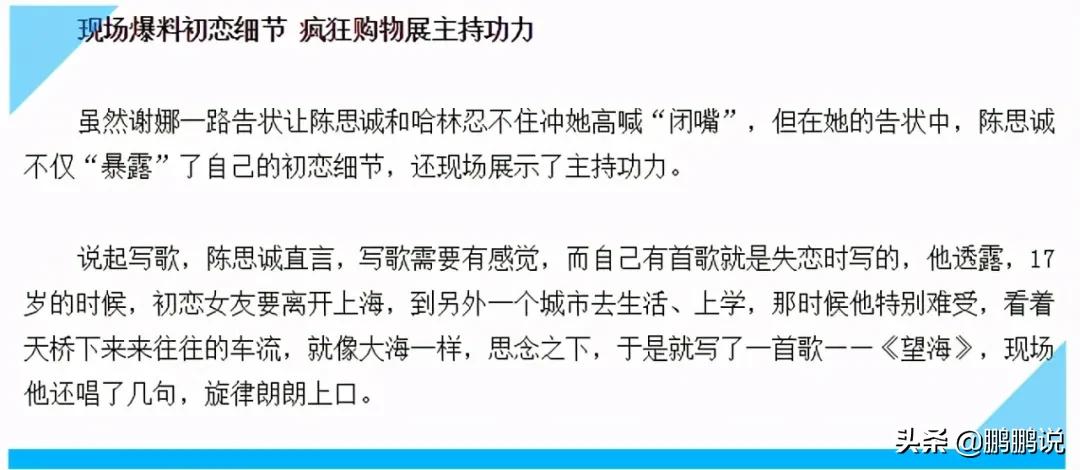 初中时候,陈卓早恋了,两个人经常偷偷摸摸约会。女友搬家到上海后,陈思成后来还为她写了一首名叫《望海》的歌,颇有些韵律。