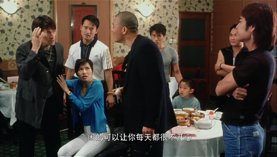 韦吉祥去医院看大洪,大洪希望她答应自己“一定不要坐牢”,而这句话一直是韦吉祥的座右铭和挡箭牌。在法庭上,韦吉祥以大洪的名义卖惨,在周胖子的案件中,还和律师扮鬼脸,搞得大法官都被他亲情戏流泪,律师说他有演员的天赋,确实是。以后,韦吉祥继续把“我答应过儿子,一定不要坐牢”这句当做护心符,欺骗律师sandy(梁咏琪饰)。其潜台词无异于:“儿子,不管我做什么事,我绝不去坐牢。”对于韦吉祥来说,这句话更多的不是为了大洪,而是为了自己,为了自己能得到朋友同情和逃脱法律的制裁。如果真的为了儿子,韦吉祥需要做的只有两点,要么尽快收手,退出江湖;要么了却江湖事,宁愿坐牢,不做怂包。