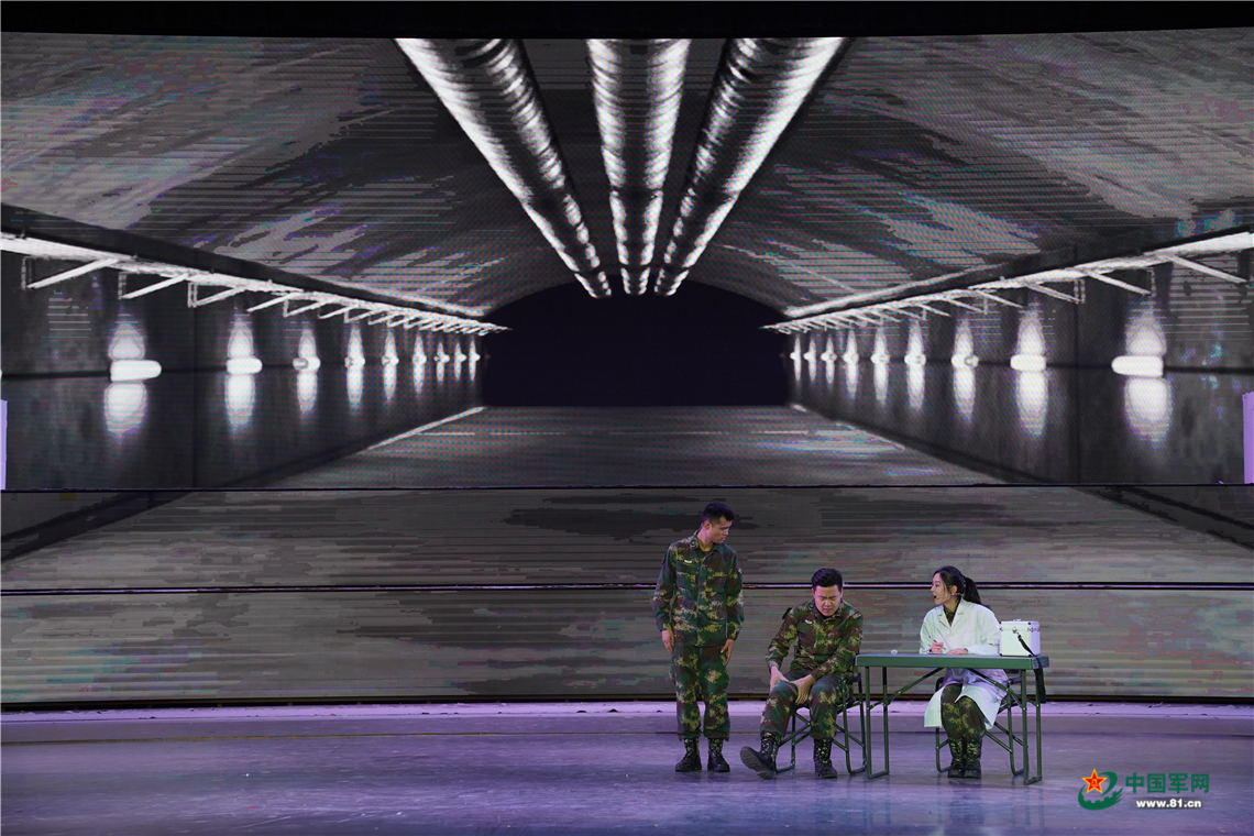 “我们营现在训练抓的相当紧,方方面面都要求过硬,不是我吹牛,那训练大纲的优秀线,只是我们的合格线……”情景表演《洞库“诊断书”》上演了一幕正在“龙宫”担负值班任务的官兵,由两名战士“训练诊断书”与军医艾医生在诊断过程中产生的“误会”开始,让艾医生看到了 官兵实装操作时的严谨细致、实兵演练时的沉着冷静和连续奋战后的昂扬状态,并令她相信,有这样过硬的官兵,当那一天来临,东风呼啸定能决胜万里疆场。