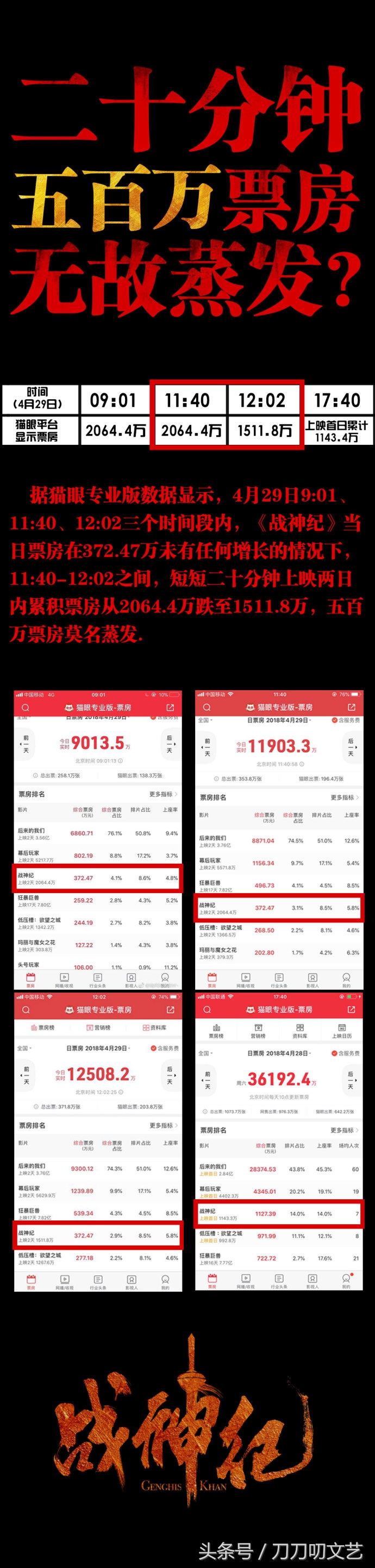 这个“五一”假期的票房大战,硝烟味儿浓,继《后来的我们》爆发大规模退票之后,今天晚上19:05《战神纪》片方通过官微公开质疑:20分钟无故蒸发500万,我们的票房去哪儿了?