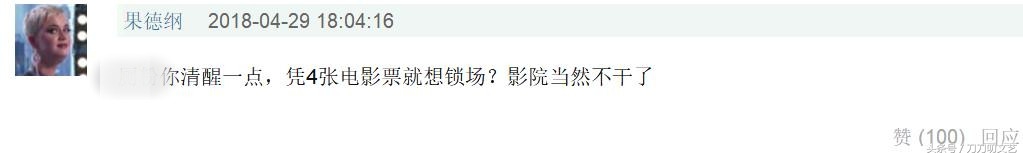 就有人认为,这跟去年杨洋刘亦菲主演的电影《三生三世十里桃花》上映时粉丝锁场的行为类似,影院当然不愿意粉丝就用三四张票来“承包”一个放映厅,更何况同时段还有其他电影爆满,影院肯定是想要用同等的放映厅资源来达到最大化的售票利益了。