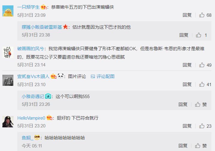 官宣消息公布后,微博上的评论还是相对友好的。特别是对于他的下巴,好评不断。