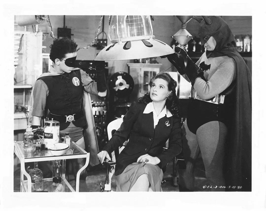 《蝙蝠侠与罗宾》和1943版《蝙蝠侠》一样是电视连续剧,第二任蝙蝠侠的造型没怎么变,罗宾也还是个小男孩,只是从剧照上看,演员罗伯特·洛瑞的身材在今天看来,应该是不及格的。
