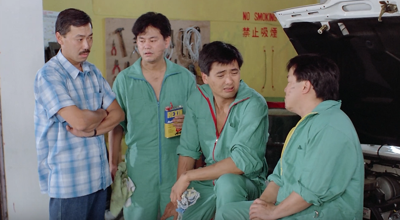 自带bgm的宋子豪,出狱之后,在忠伯的介绍之下,来到“坚记车行”找工作,顺带结识了车行内的三名员工,阿发(周润发饰演)、交通灯(陈百祥饰演)、不好笑(曾志伟饰演)。
