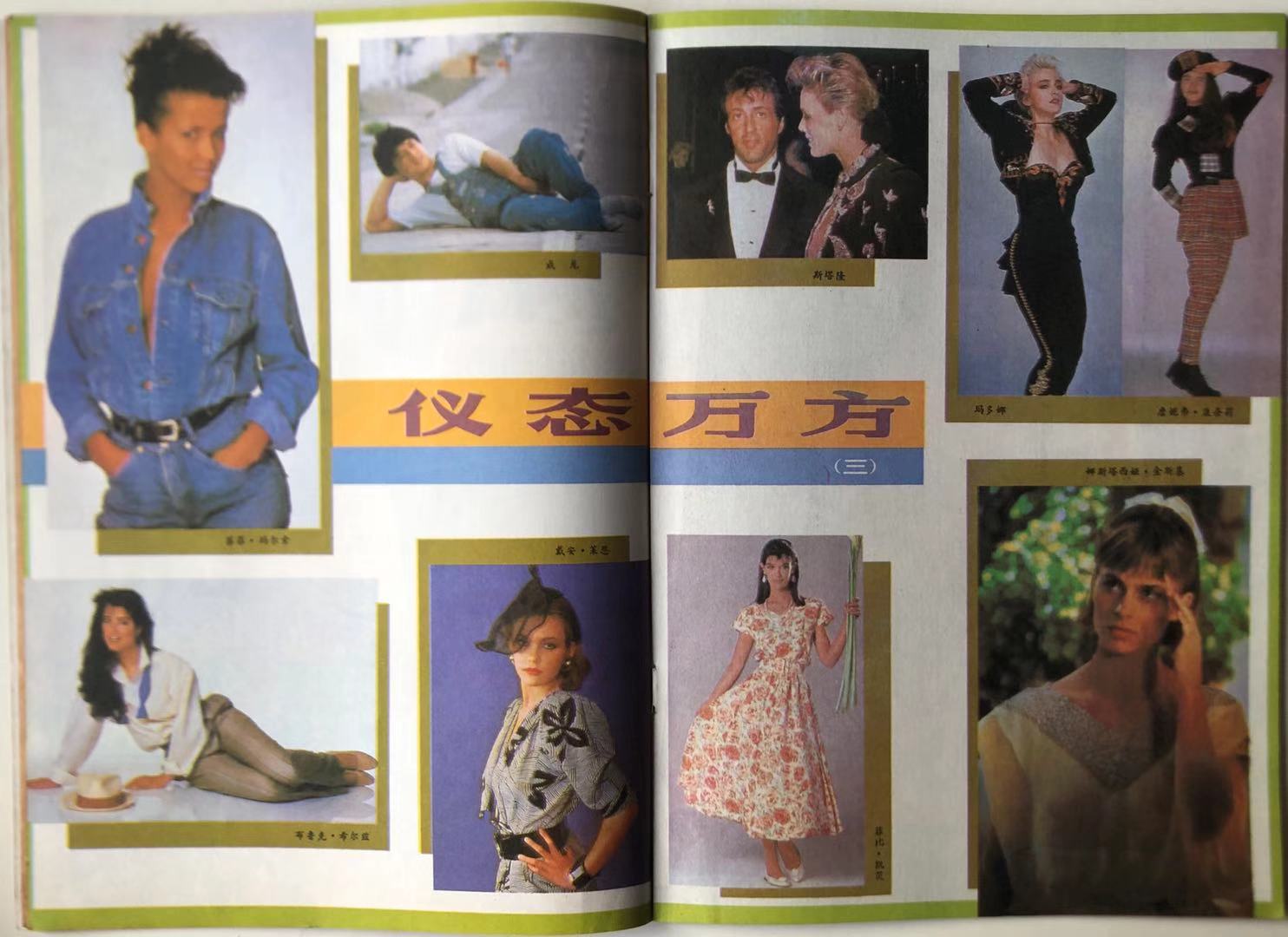 - 从左到右,从上到下分别是法国演员苏菲玛索,中国演员成龙,美国演员史泰龙,麦当娜,詹尼弗·康奈利,布鲁克·希尔兹,戴安·莲恩,菲比·凯茨和德国女演员娜斯塔西亚·金斯基。