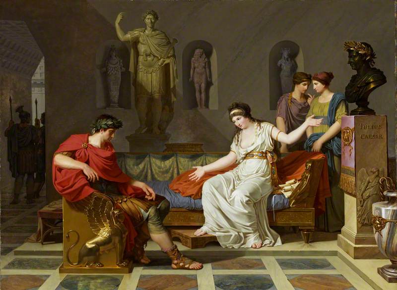 埃及艳后有许多轶事广为人知,比如她满身宝石、绫罗绸缎,被包裹在绣花地毯中偷渡进凯撒的房间——艺术家们当然不会放过这个题材。