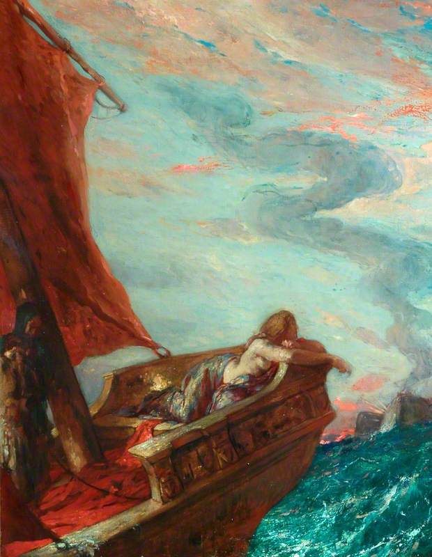 当然,这一海战场景同样被许多画家在幻想中创造出来——但不是一个统帅,而是一个在船上依旧在散发迷人气息的独特花瓶。
