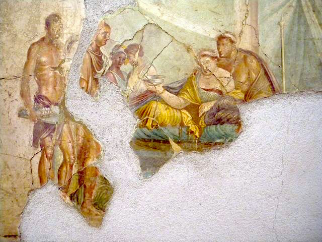 用眼镜蛇自杀的说法当然并没有历史根据,至少在这张公元一世纪左右的庞贝古城壁画上,埃及艳后是服毒而死的——但替艺术家思考一下,服毒的人毕竟有千千万,不画个眼镜蛇怎么体现出埃及艳后的身份?
