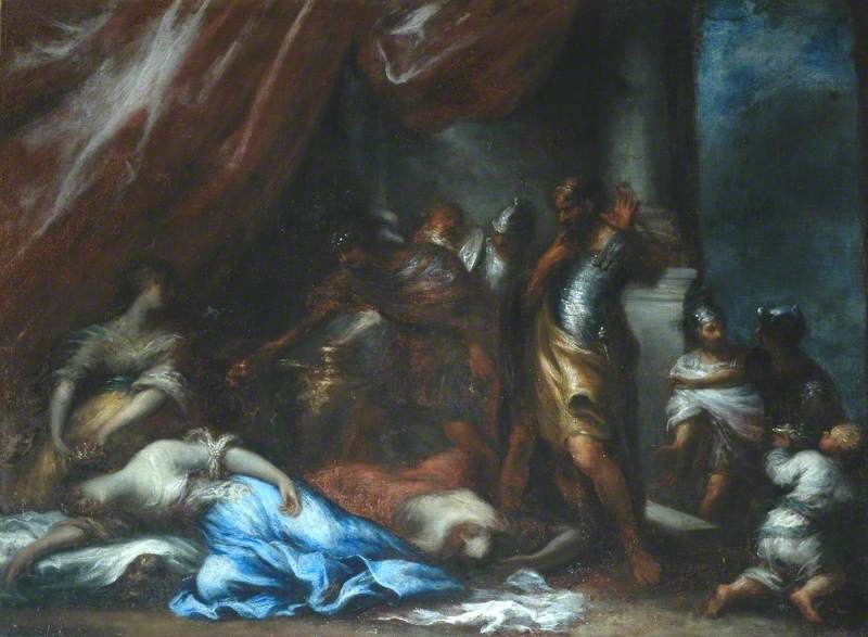 这一题材同样属于文学创作范畴,源于伊壁鸠鲁的《博物志》:埃及艳后的情人、盟友安东尼奥沉迷于克丽奥佩特拉,为她举办了一场极度奢华的宴会。这位罗马来的征服者趾高气扬地在酒席上扬言:如此级别的宴会是无法超越的,而艳后闻言则表示,愿打赌,办一场更胜一筹的宴会。
