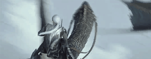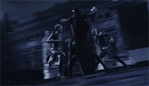 当然,有时影片也会反其道而行,采用慢镜头来规避卡壳的动作,然后就出现了下面这种情况,右边这哥们是刻意失重了,停在半空等主角打他吗?