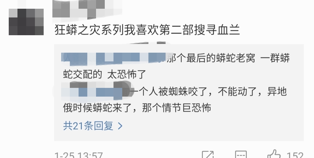 听到这个消息,不少网友纷纷表示狂蟒之灾是他小时候的阴影,有一部中出现了蟒蛇窝,特效做的特别逼真,吓到了不少网友,让很多网友都印象深刻,真真十分的恐怖。
