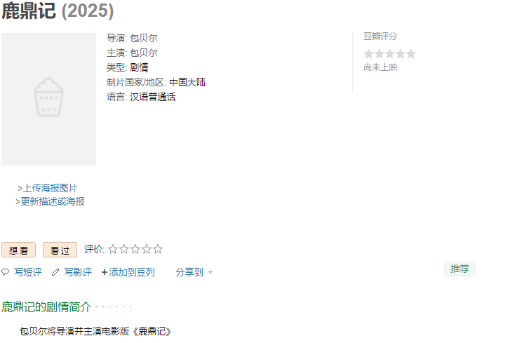 其中最引人注目的当属,由他自导自演的喜剧电影《鹿鼎记》,包贝尔饰演韦小宝,简直不敢想象会是什么形象。而且还是自导自演,演员都没做明白呢,就着急自导自演了?