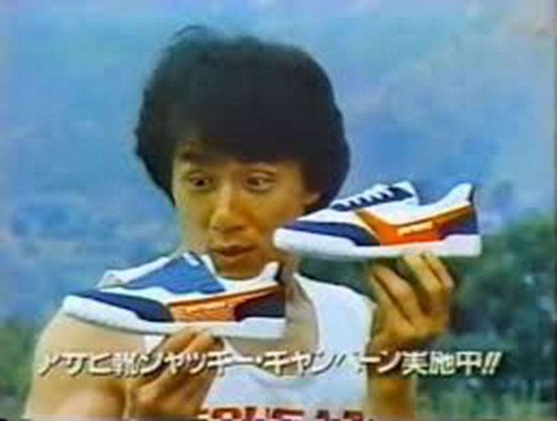 他还曾为日本球鞋品牌 asahi 拍摄广告。众所周知当年成龙大哥代言的品牌,大多难逃倒闭的魔咒,不过这个品牌幸运地存活到了现在。